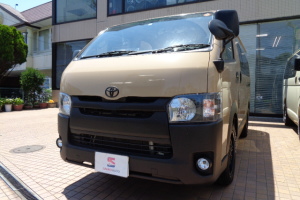 ハイエースの6人乗りバン。エクステリアをベージュとブラックの2トーンカラー。
